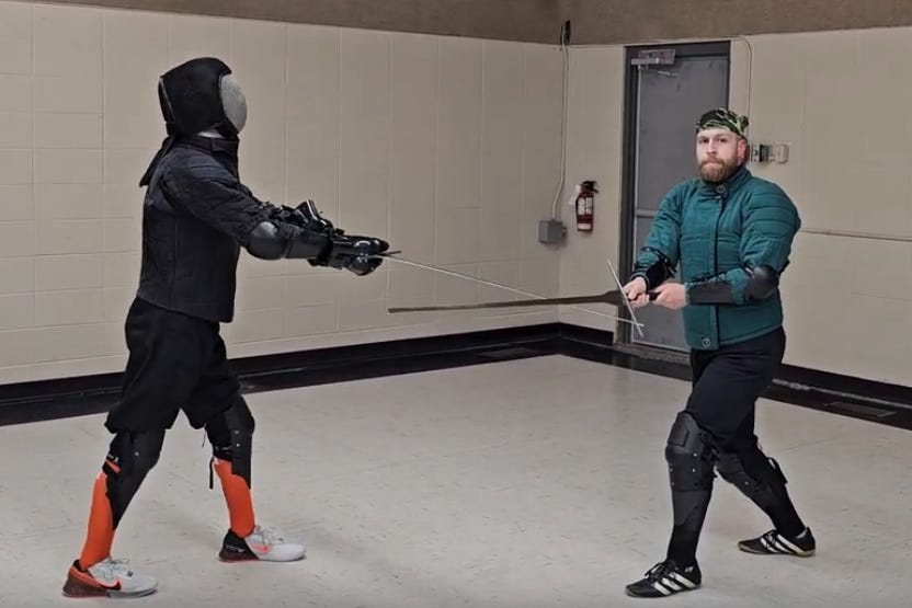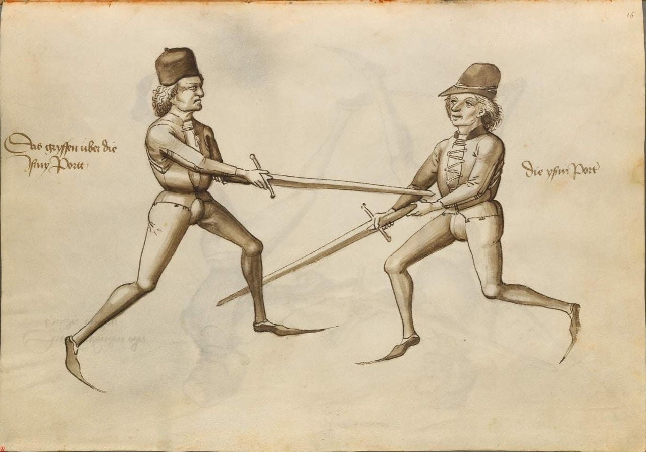 I have also recently become quite focused on what I call the defensive system within Liechtenauer fencing2. This is those aspects of the fencing approach whose function is primarily defensive, which prevent the opponent from landing hits. Absetzen appears to be such a technique, and so it is worth discussing and understanding alongside other defensive tools like Hengen, Abwenden, and Vorsetzcen.