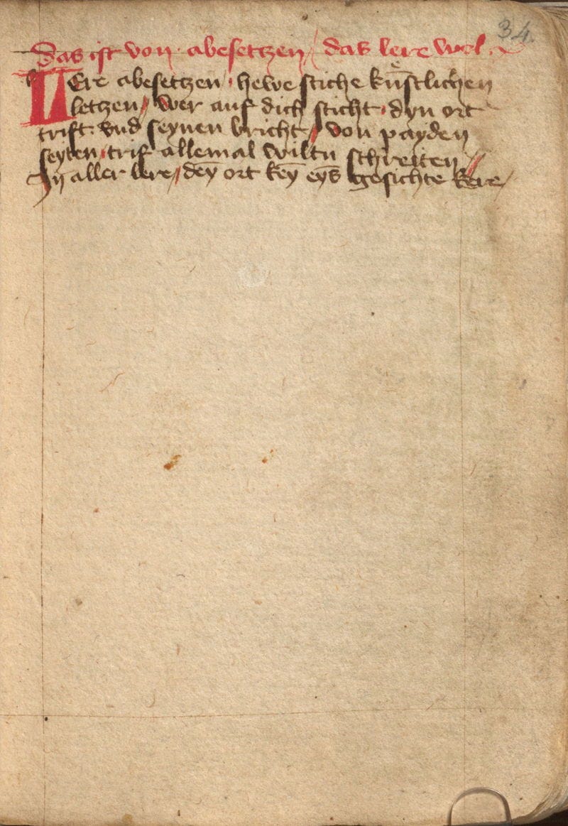 The absetzen lines within the Zettel are provided. Unfortunately, the author did not provide a gloss explanation. The page, Fol 34r, has a blank space. Perhaps the scribe intended to fill it in later, but it was never completed.